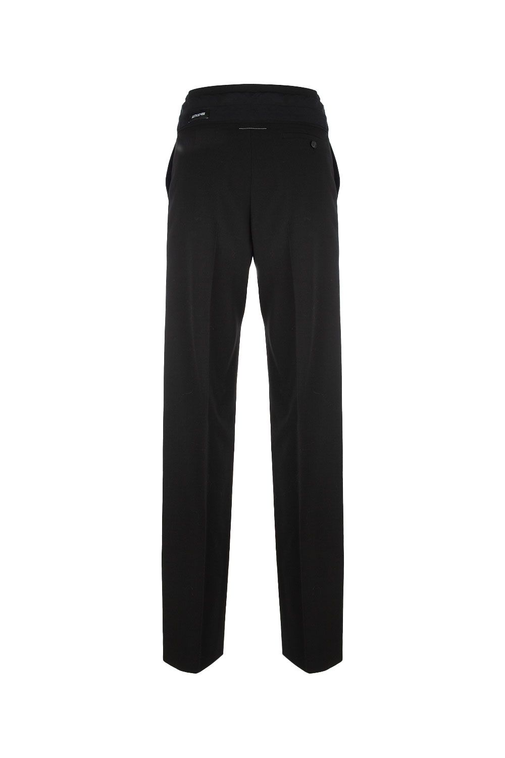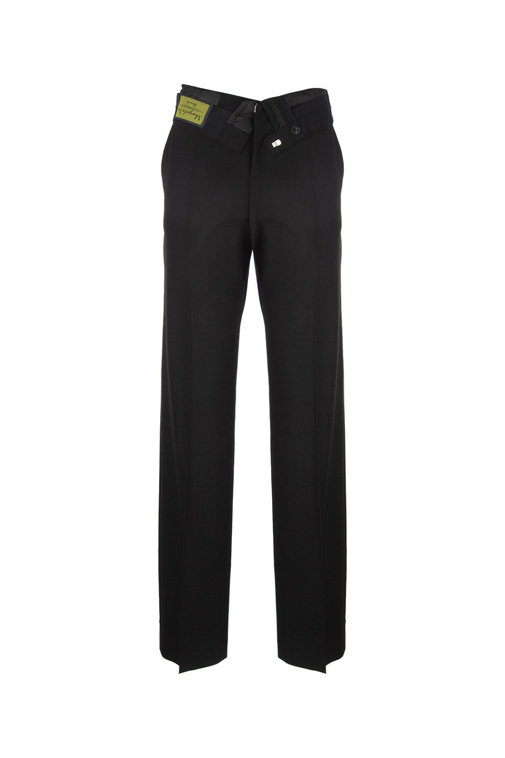 Pantaloni in fresco lana neri a gamba dritta con vita rovesciata e tasche laterali