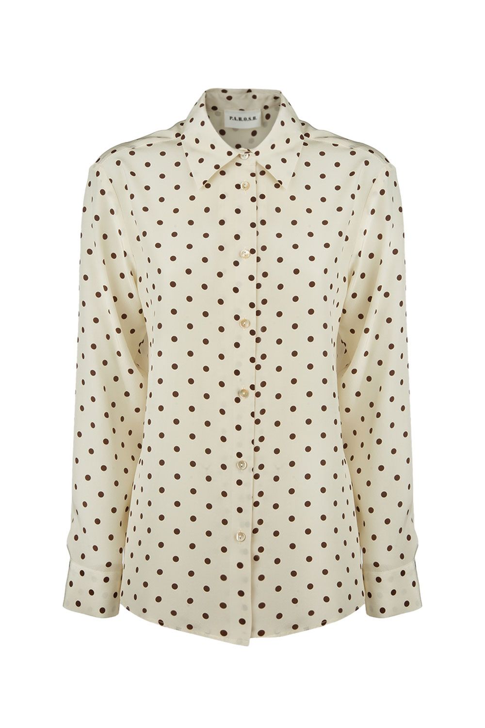 Pantaloni pigiama in seta panna a pois marroni a gamba ampia con vita elasticata