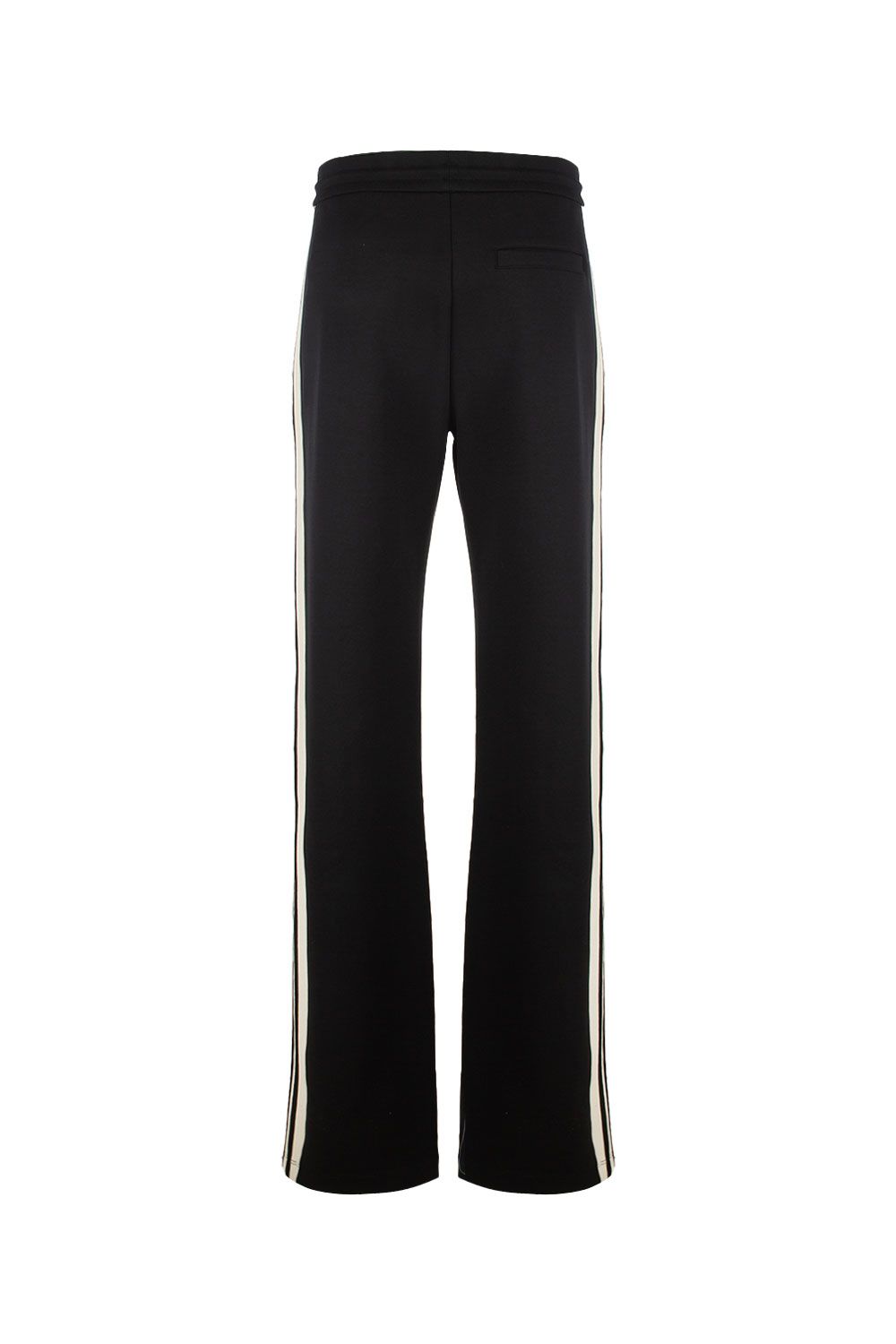 Pantaloni in jersey scuba nero a gamba ampia con banda laterale panna a contrasto, tasche laterali a filetto e vita elasticata con coulisse