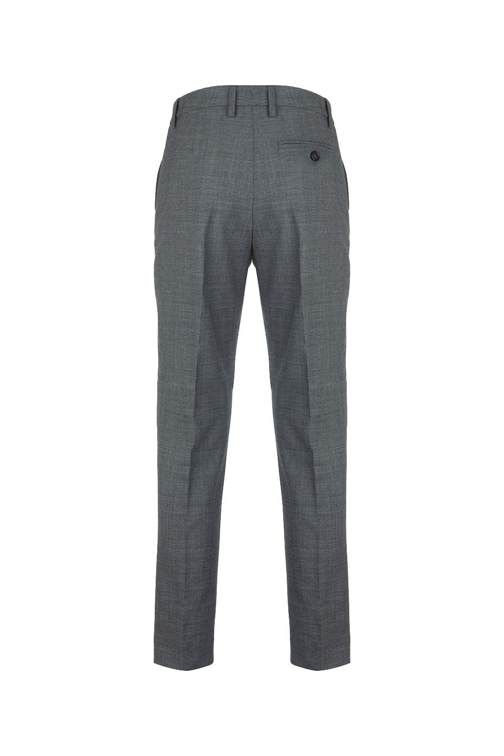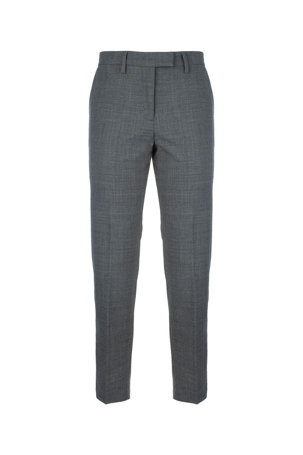 Pantaloni gamba dritta crop in misto lana grigi, chiusura con bottone, gancio e zip, passanti, due tasche laterali e una sul retro con bottone a filetto