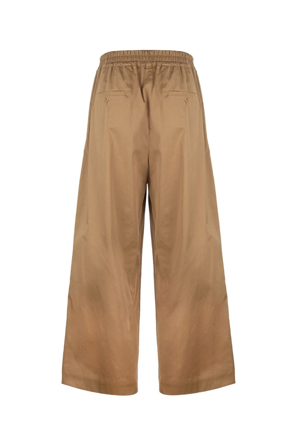 Pantaloni in popeline di cotone pesante cammello a gamba ampia crop, vita elasticata e tasche laterali