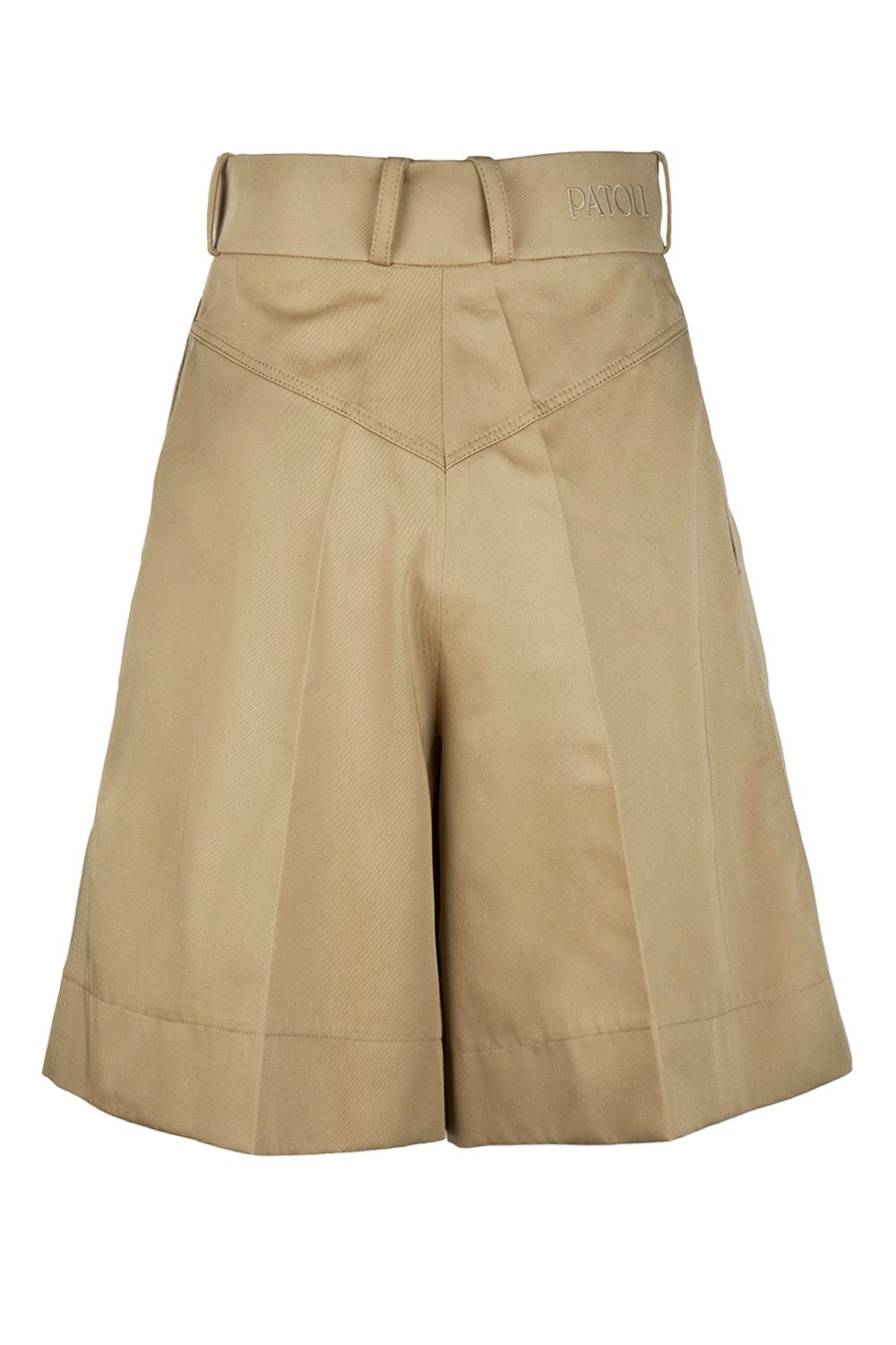 Bermuda in drill di cotone sabbia a vita alta con apertura con bottone dorato