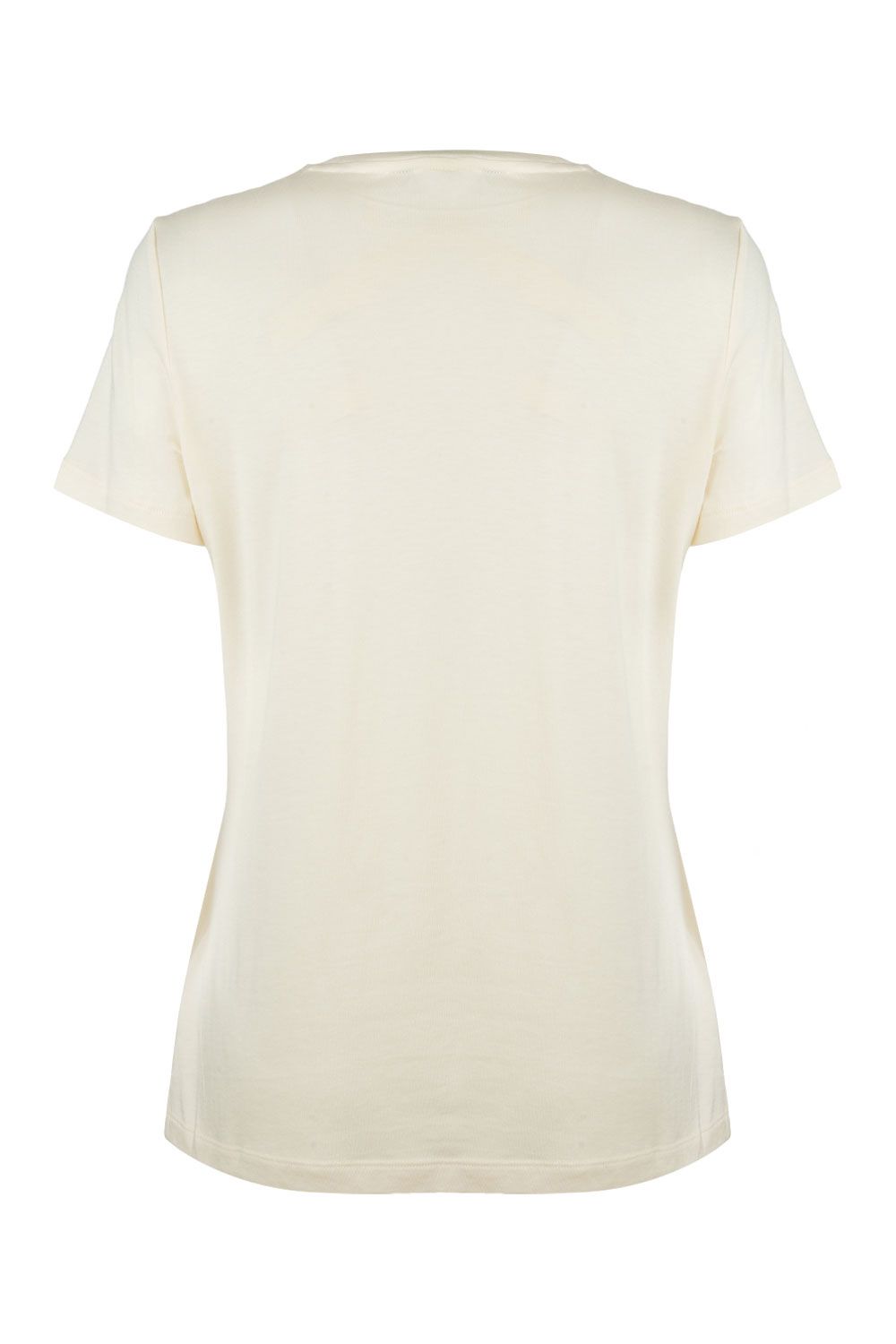 T-shirt girocollo in cotone panna con logo frontale ricamato blu navy