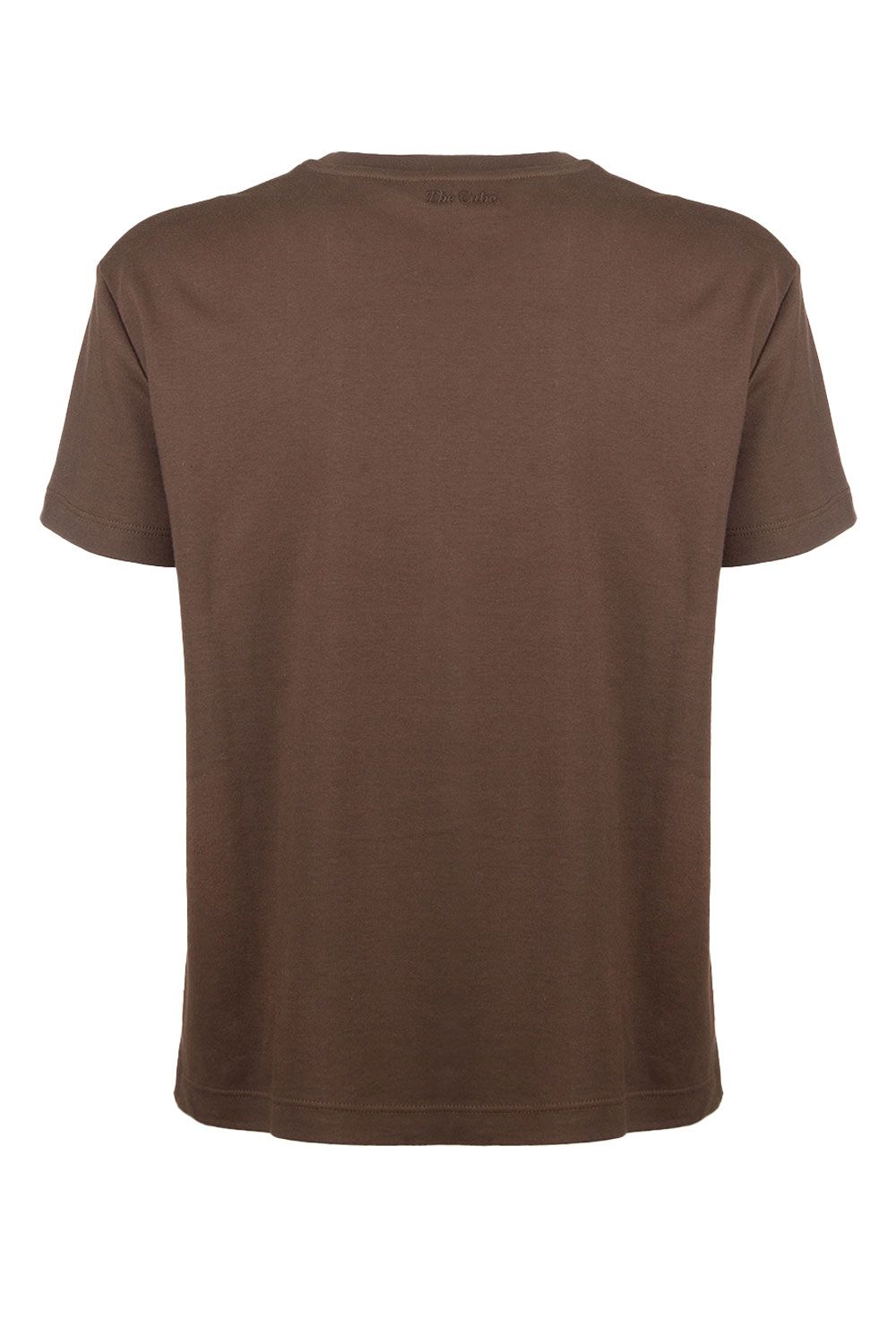 T-shirt girocollo in cotone cioccolato con ricamo frontale tono su tono