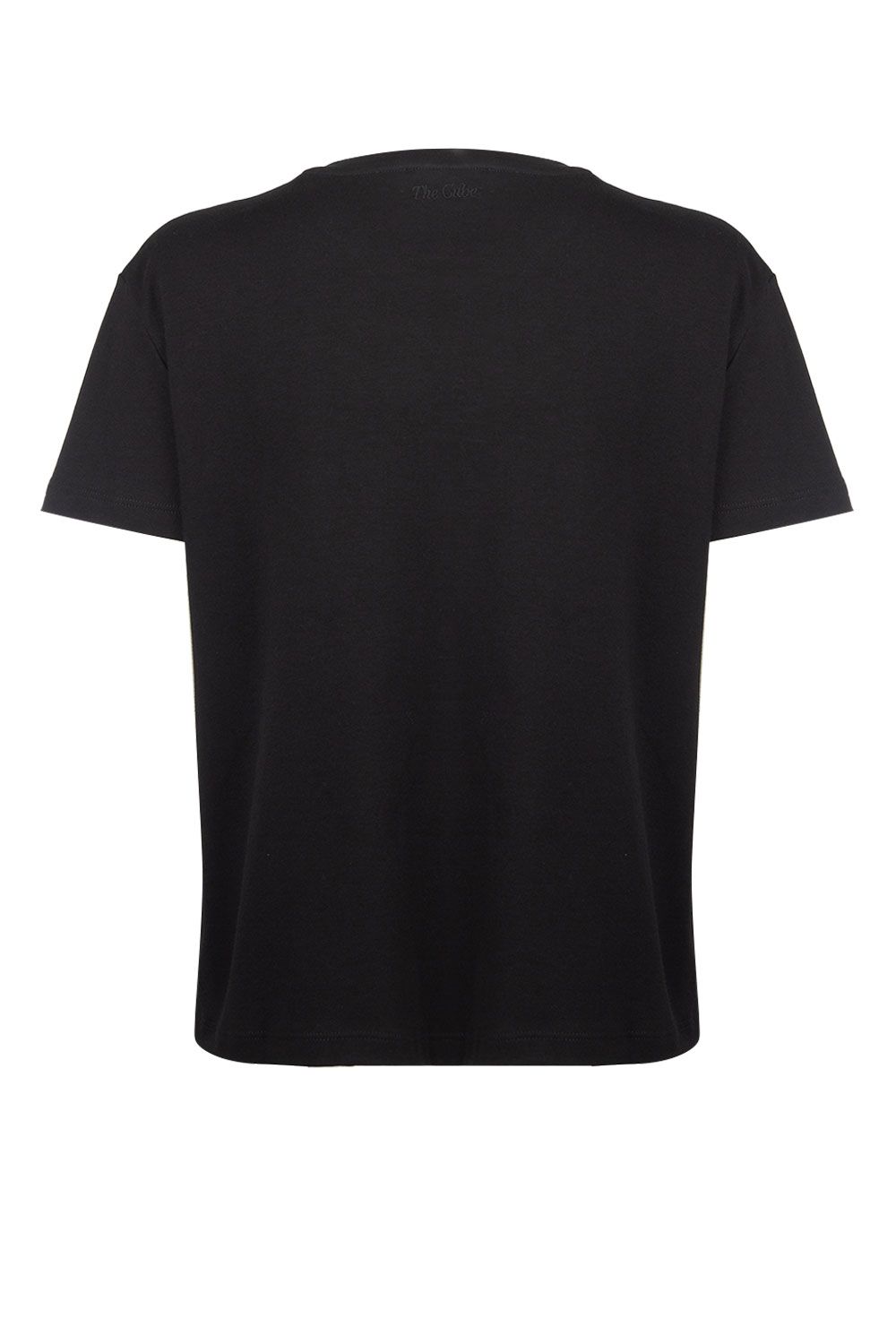 T-shirt girocollo in cotone nera con ricamo frontale tono su tono