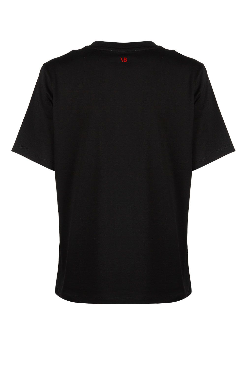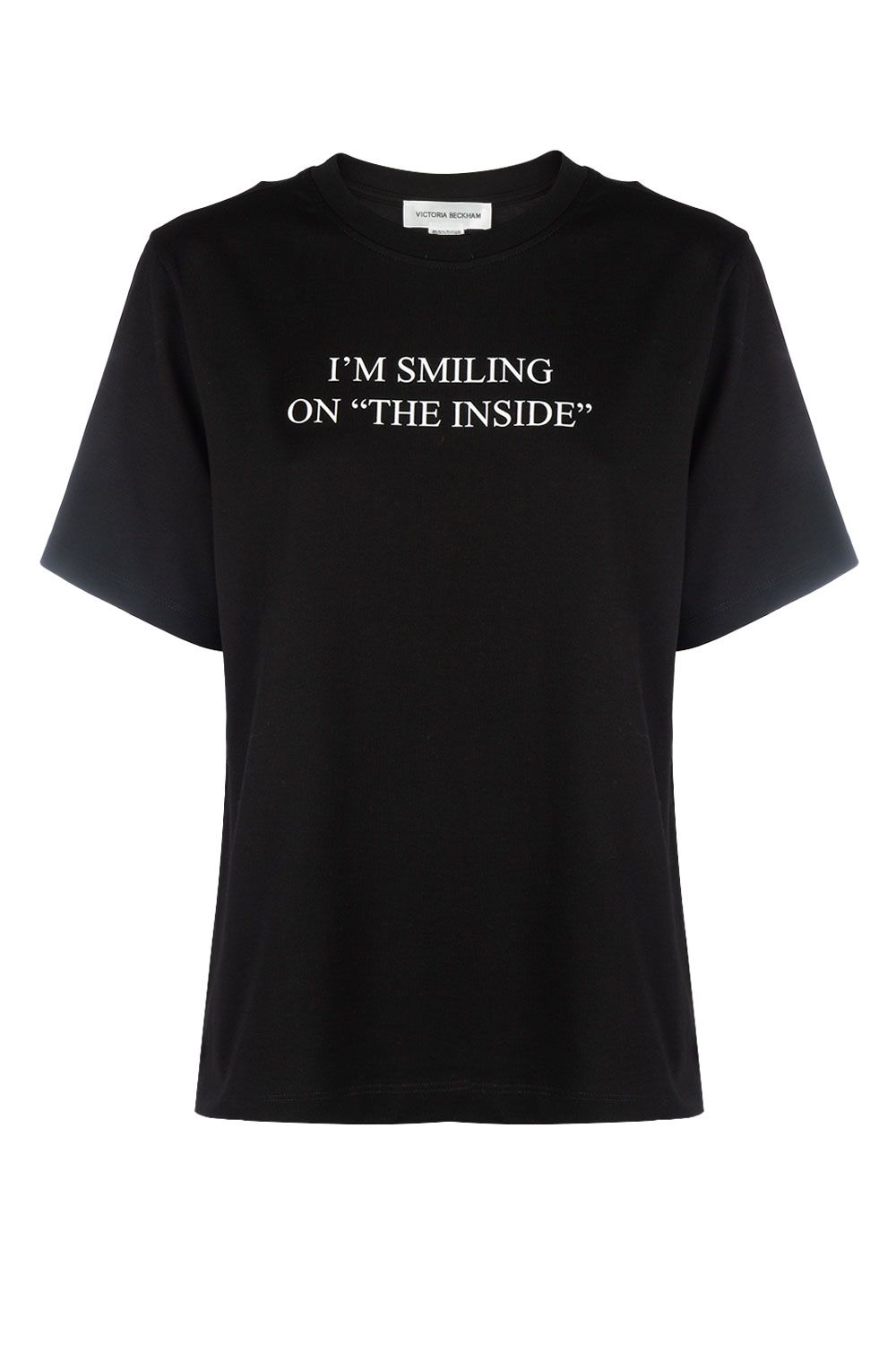T-shirt girocollo in cotone nera con scritta bianca “I’M SMILING ON THE INSIDE” e logo “VB”