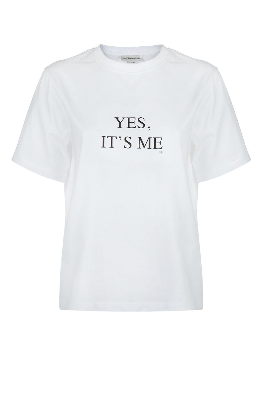 T-shirt girocollo in cotone bianca con scritta nera “YES, IT’S ME” e logo “VB”