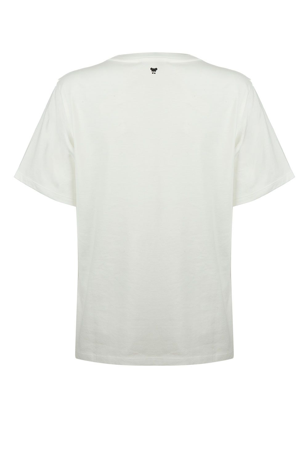 T-shirt girocollo in cotone bianca con applicazioni argento nella parte frontale a maniche corte