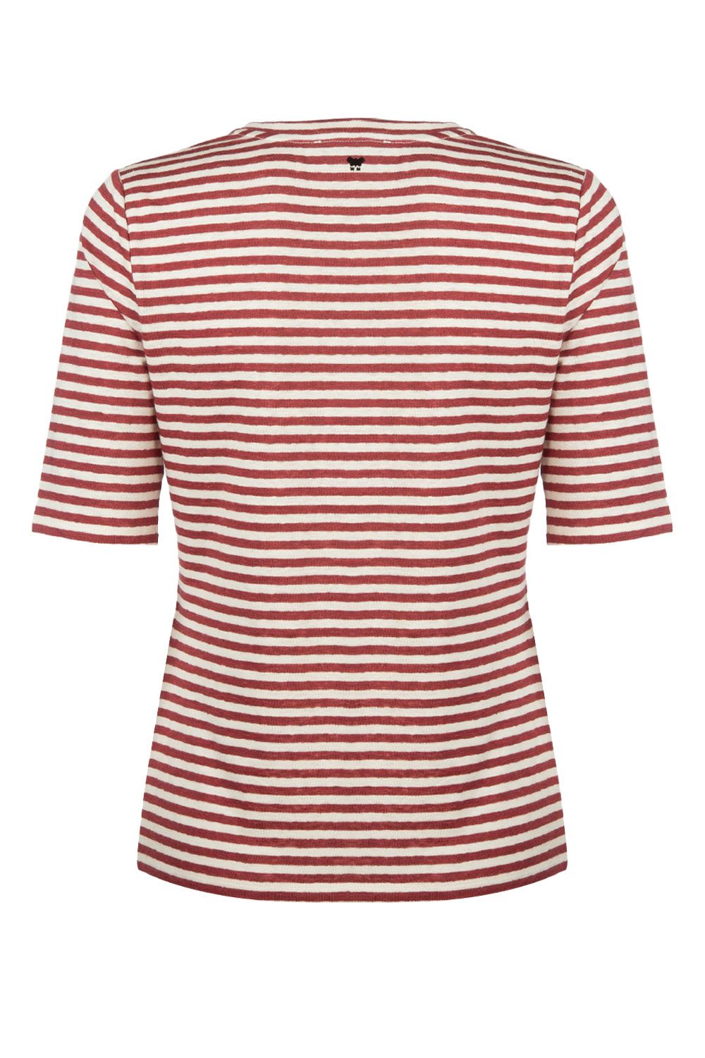 T-shirt in jersey di lino bianca a righe bordeaux con scollo a V e maniche corte