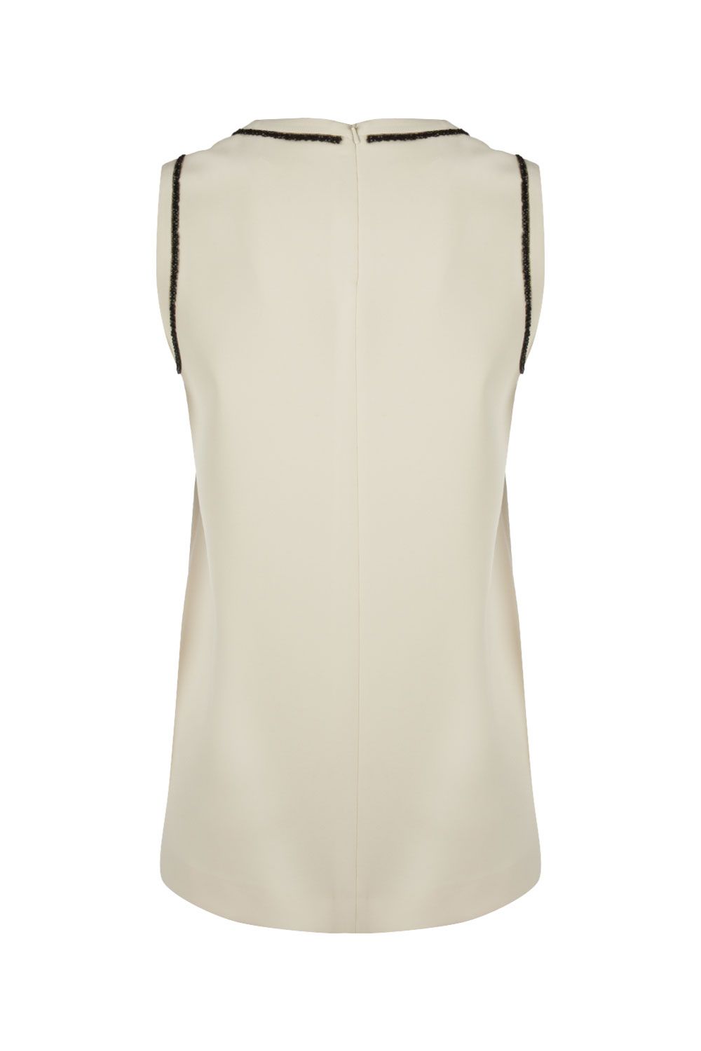 Top in cady panna con bordo in perline nere ed apertura posteriore con goccia