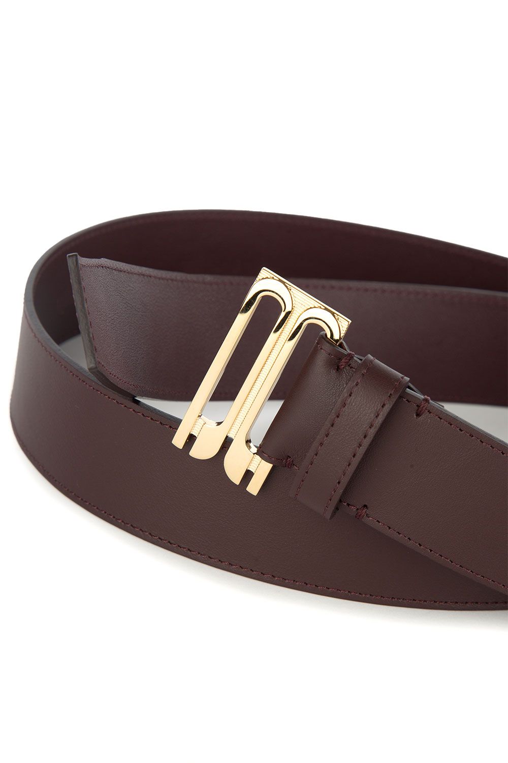 Cintura in pelle burgundy con fibbia in metallo dorato con logo