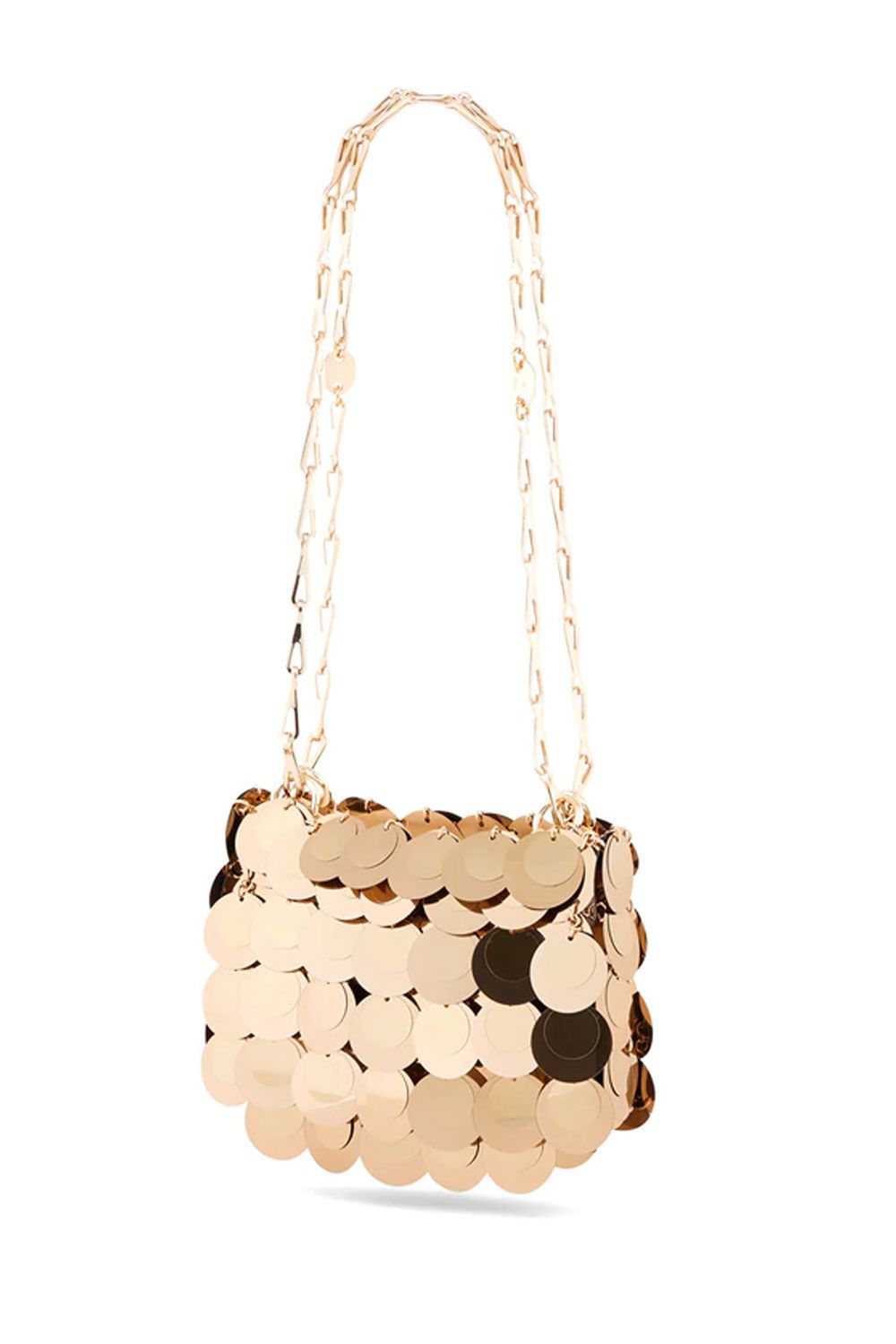 Borsa nano ricamata in paillettes oro con chiusura magnetica