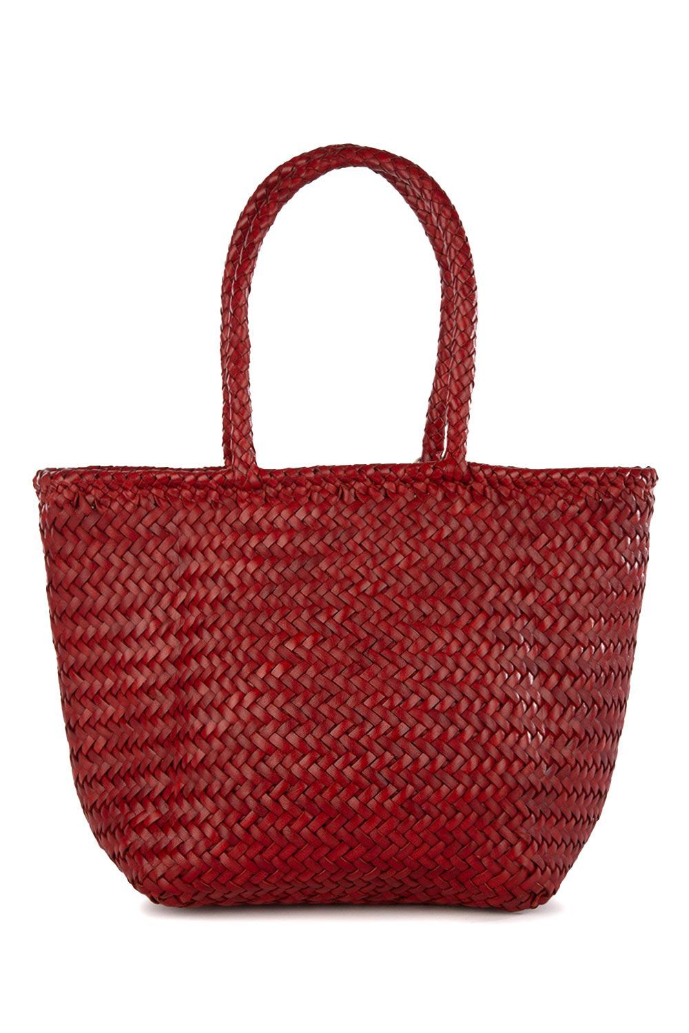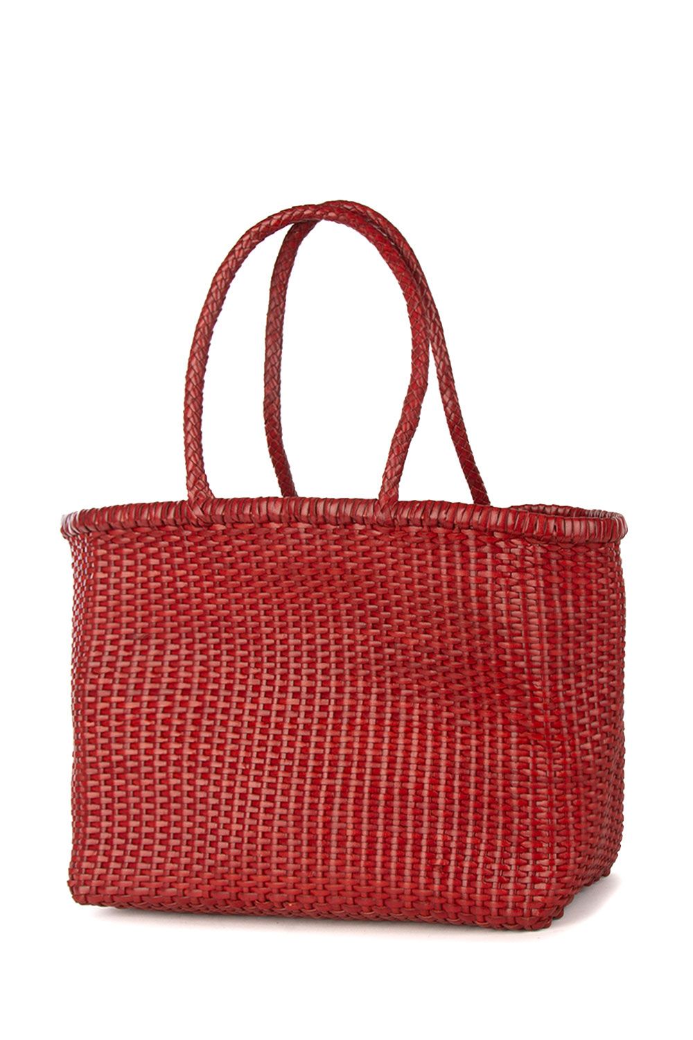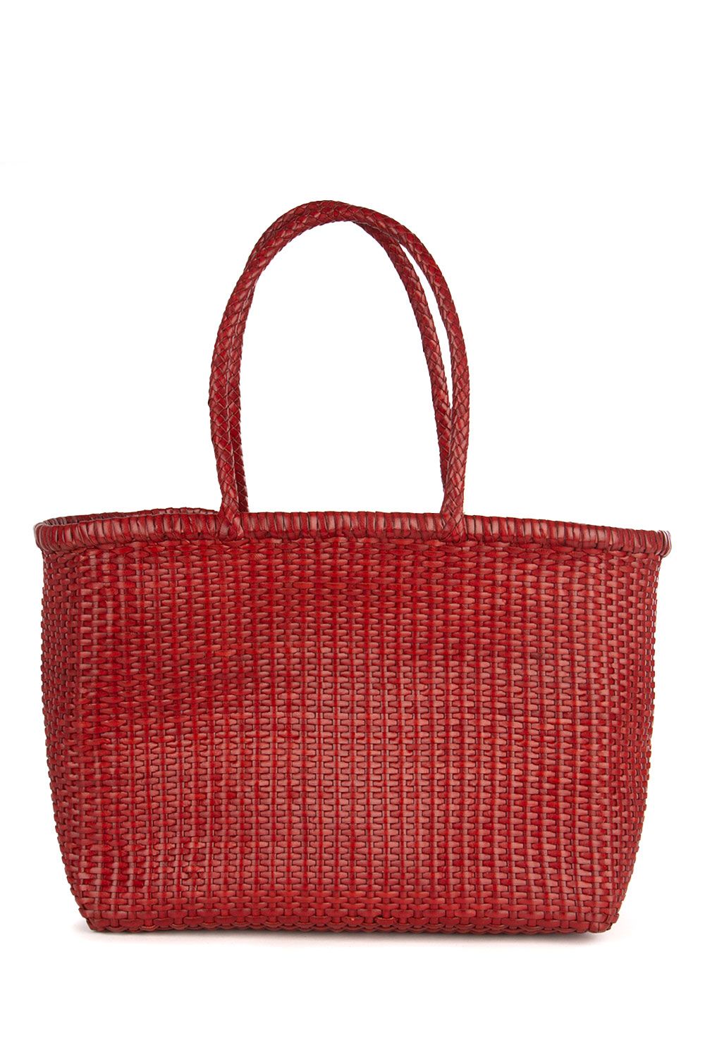 Shopper a mano in pelle intrecciata rossa con doppi manici
