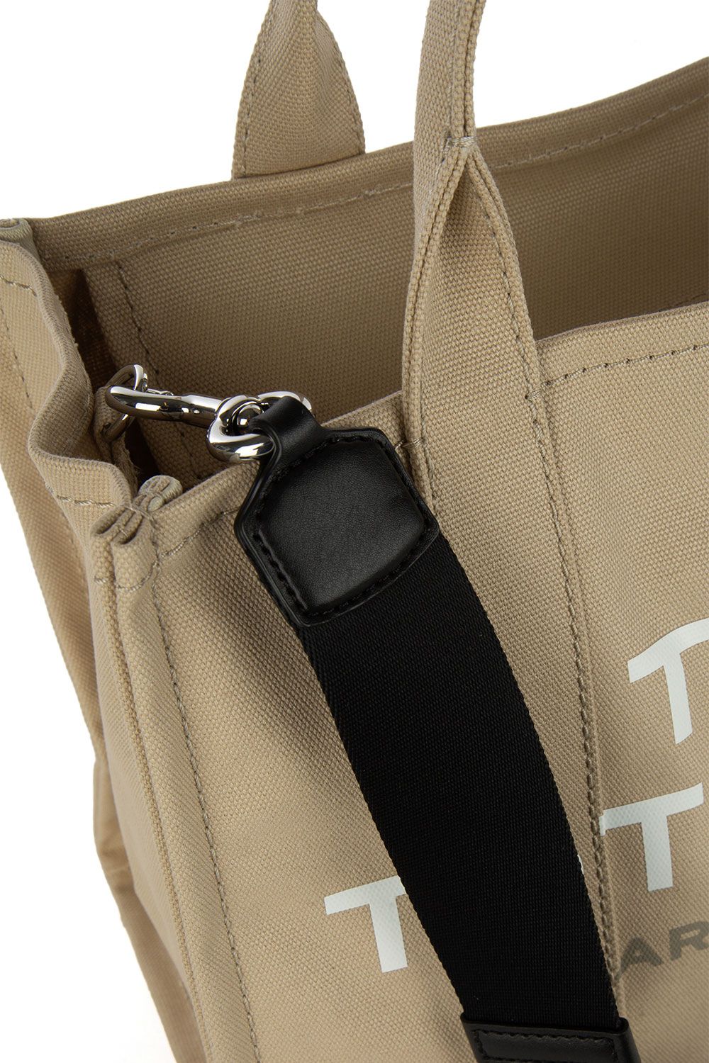 Borsa a mano in canvas beige e impreziosita da logo stampato frontalmente, chiusura interna con zip, doppio manico e tracolla regolabile e removibile in tessuto