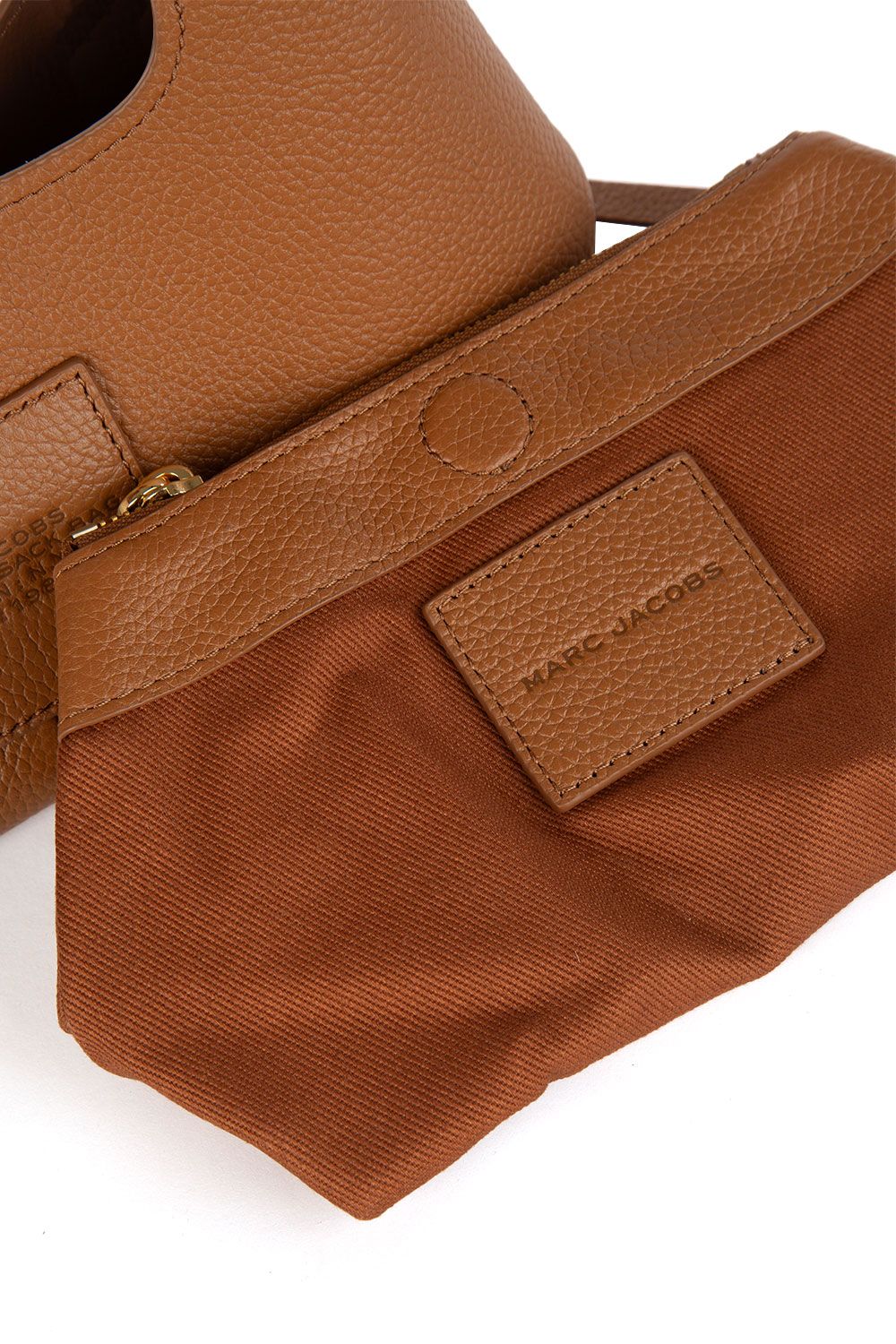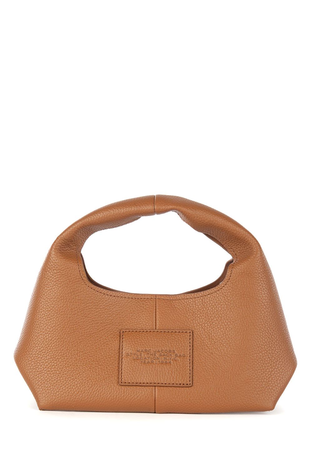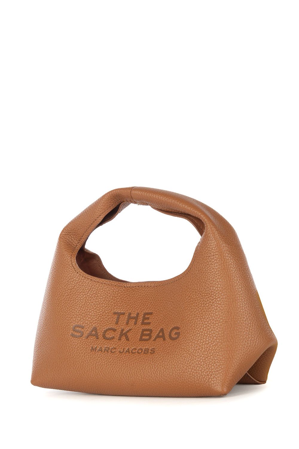 Borsa a mano in pelle cuoio e impreziosita da logo stampato frontalmente, chiusura interna con bottone automatico, sacca interna in canvas e manico a mano