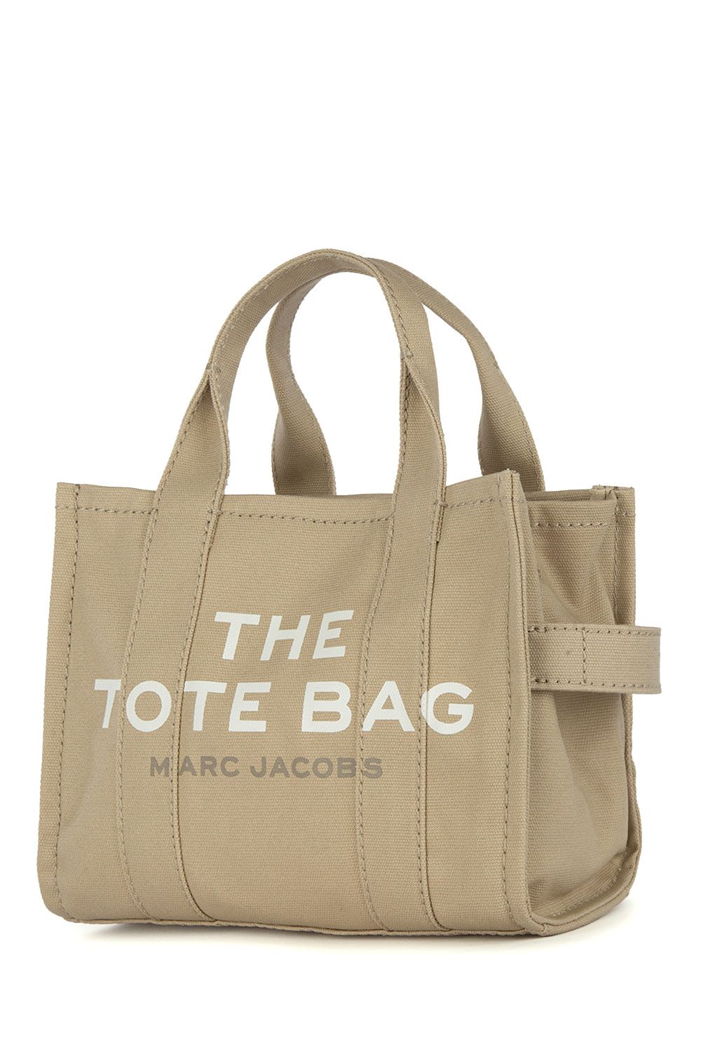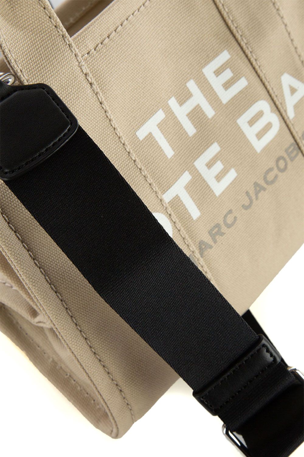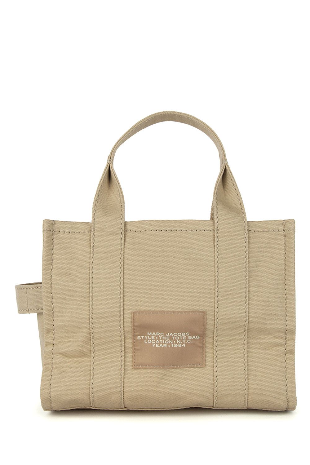 Borsa a mano in canvas beige e impreziosita da logo stampato frontalmente, chiusura interna con zip, doppio manico e tracolla regolabile e removibile in tessuto