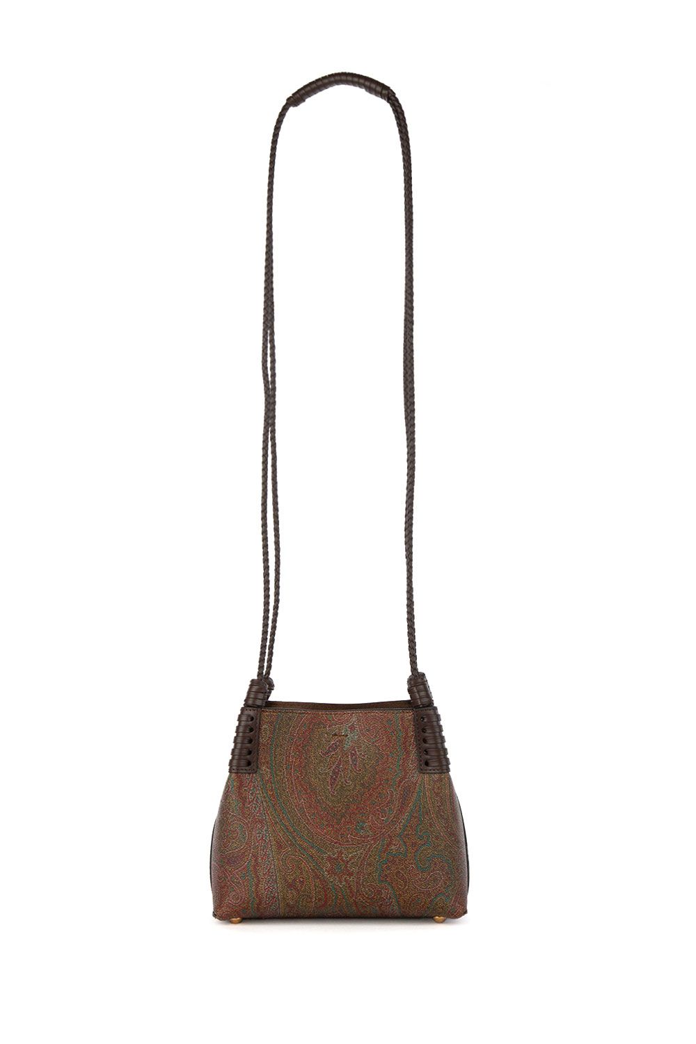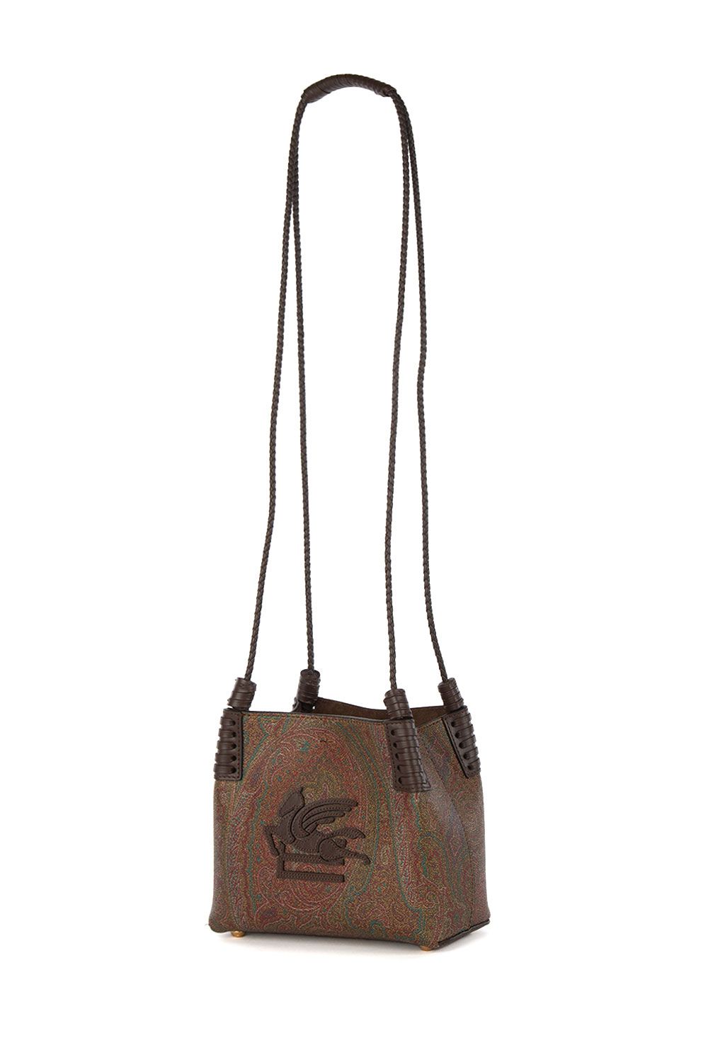 Borsa a tracolla realizzata nell’iconico tessuto Paisley jacquard con doppi manici a tracolla in pelle intrecciata testa di moro, Pegaso ricamato sul davanti e chiusura interna con gancio