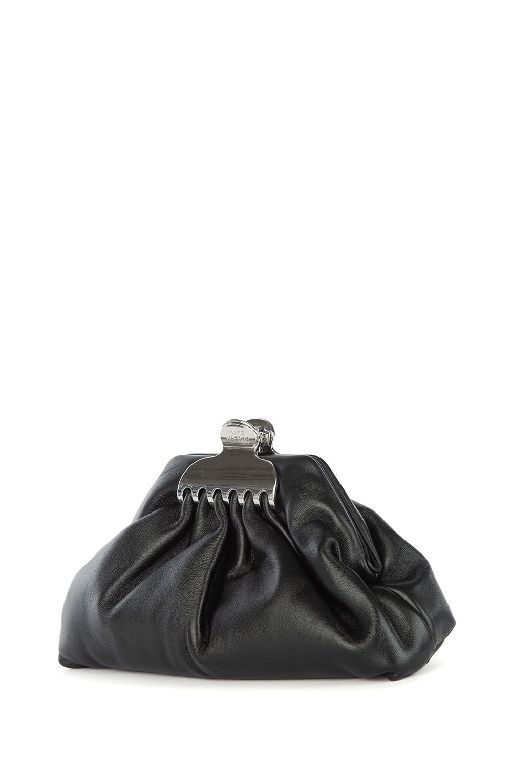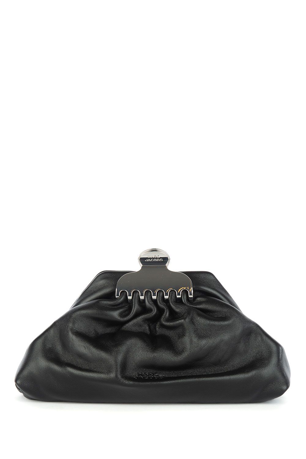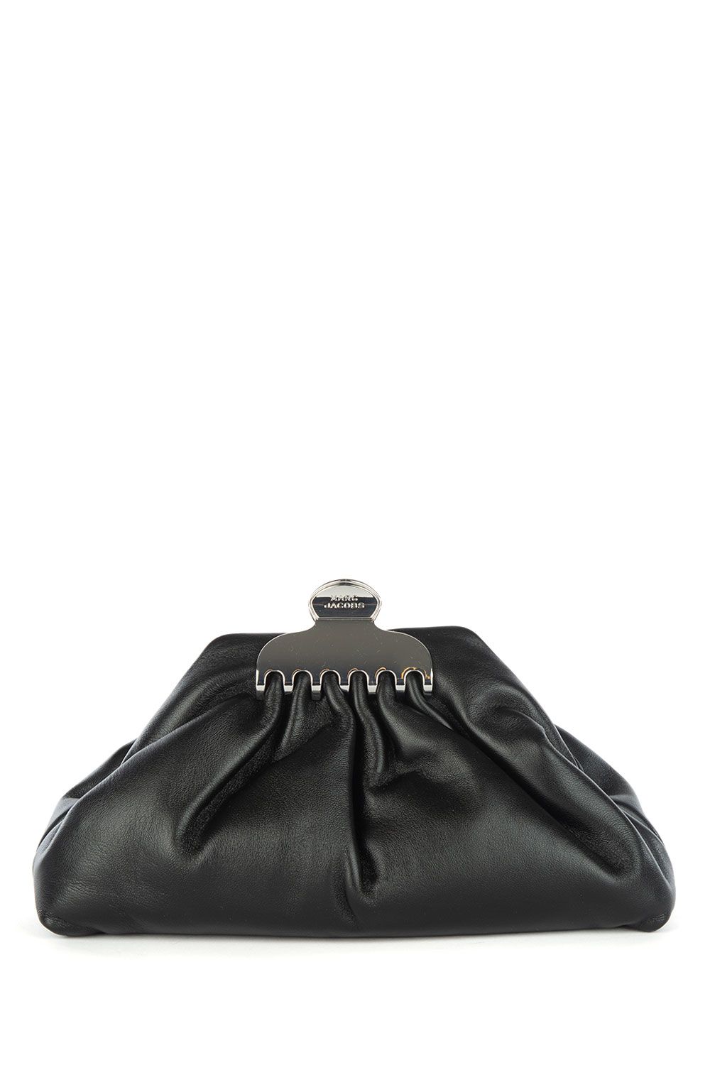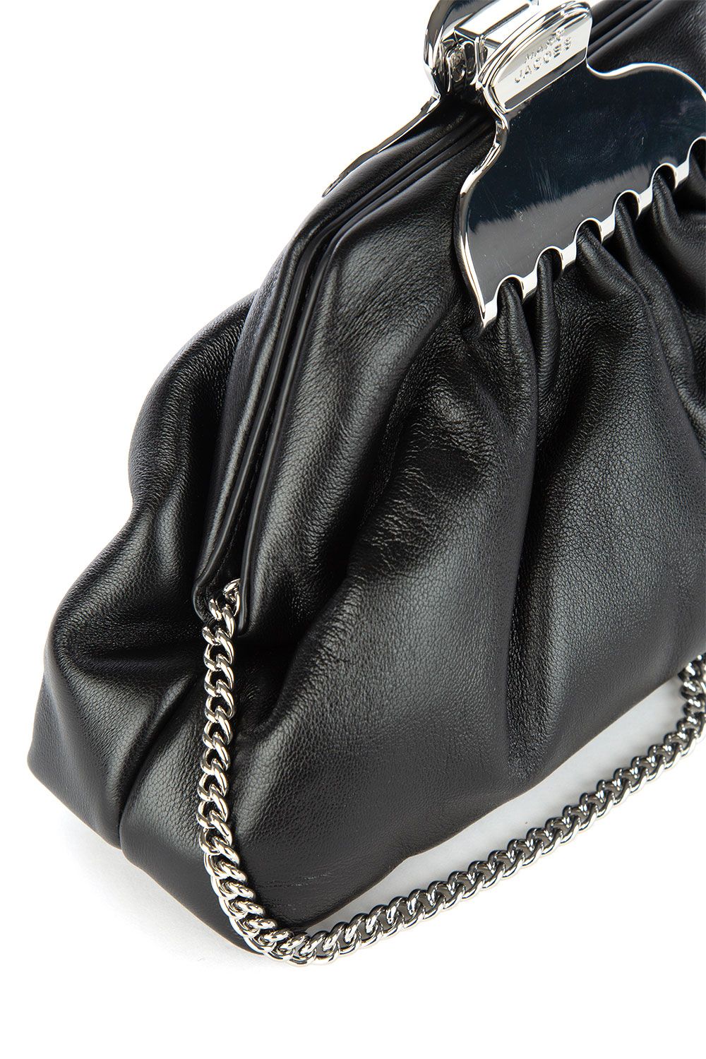 Pochette Glam in pelle nera con chiusura a calamita con dettaglio in metallo argento e tracolla removibile in metallo