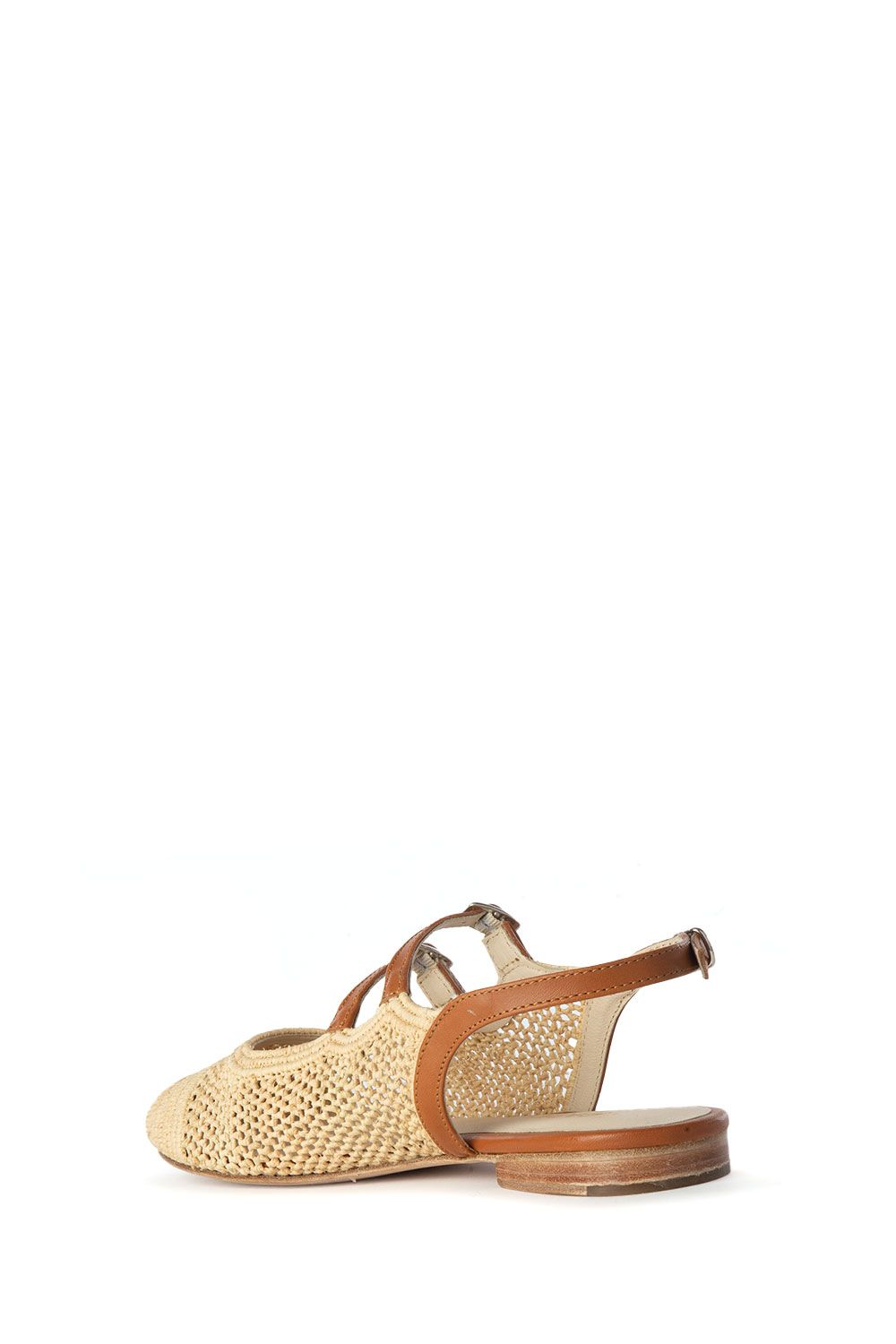 Slingaback in rafia naturale e pelle cuoio con doppi cinturini regolabili e tacco di altezza 10mm