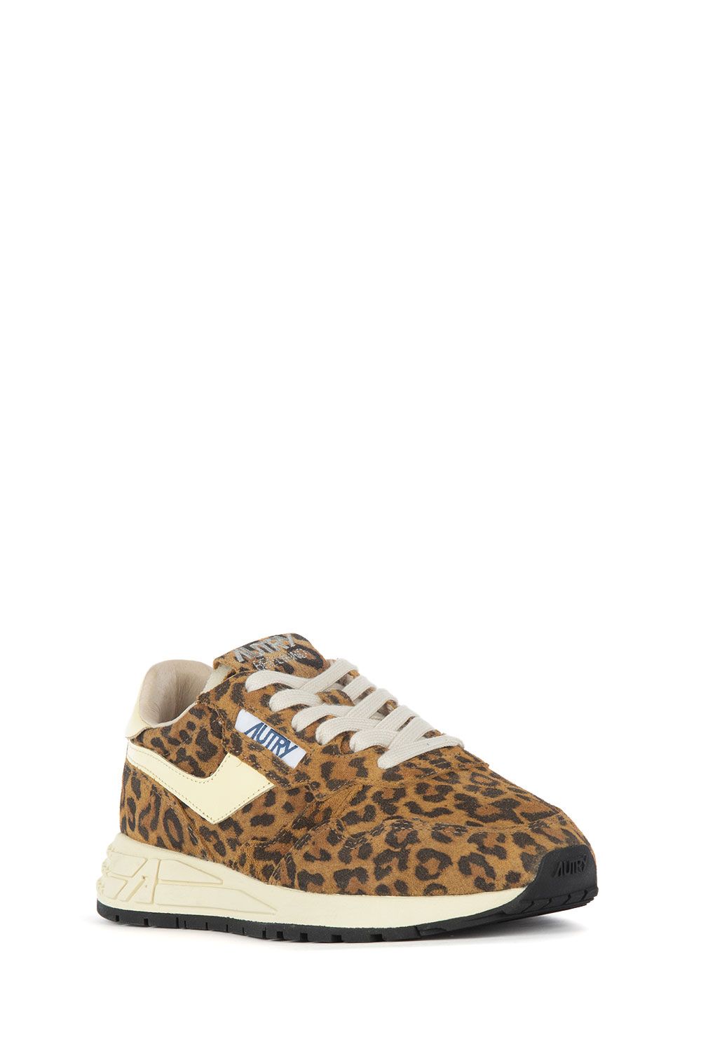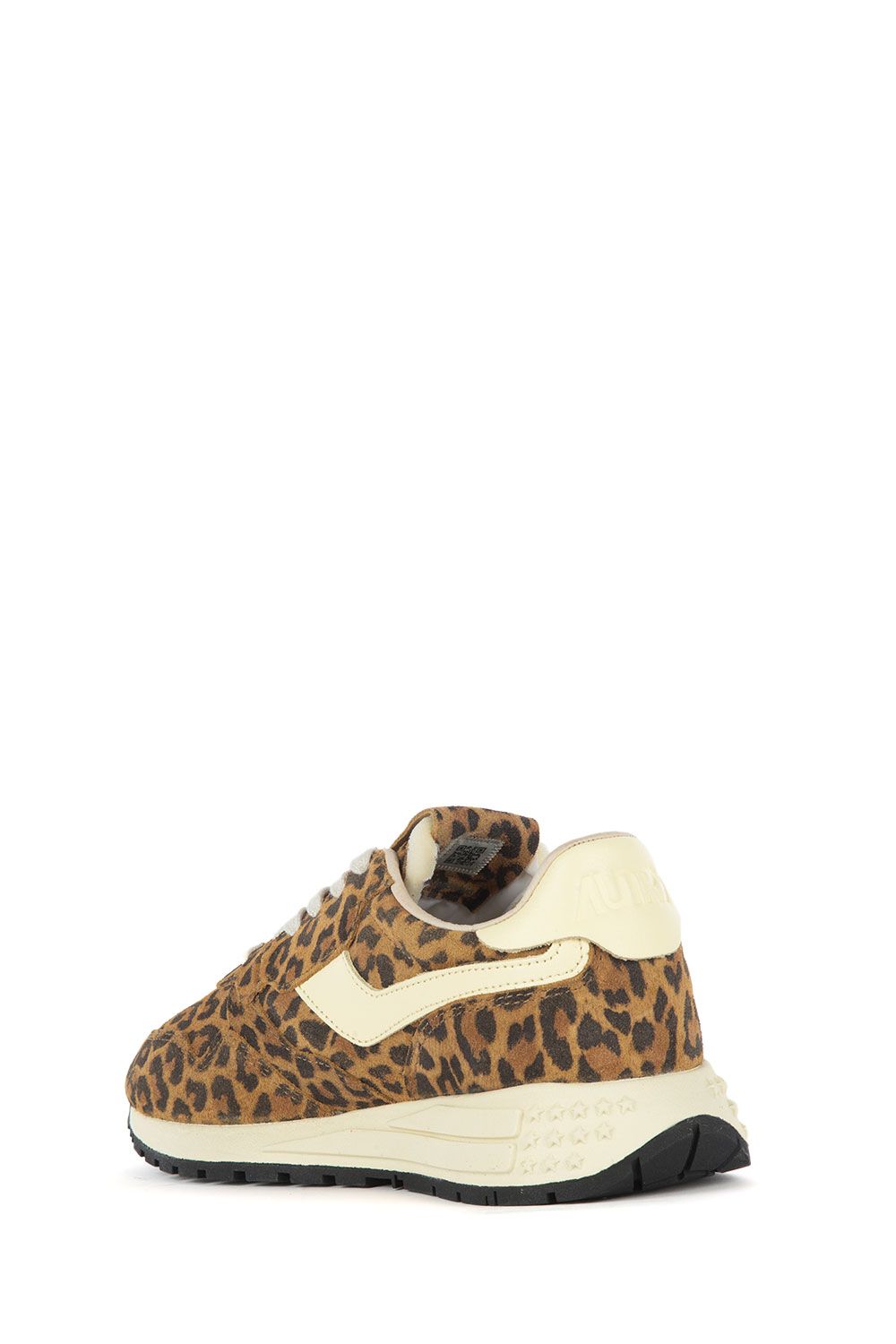 Sneakers in suede stampa animalier, inserto in pelle crema, talloncino in pelle crema con logo, linguetta con logo ricamato argento, stringhe bianche e suola in gomma