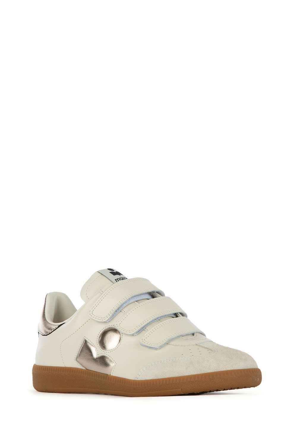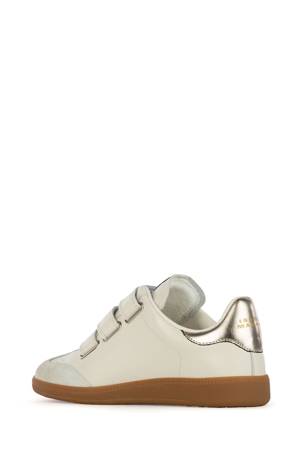 Sneakers in pelle e suede panna con logo in pelle laminata argento ed apertura con strappi